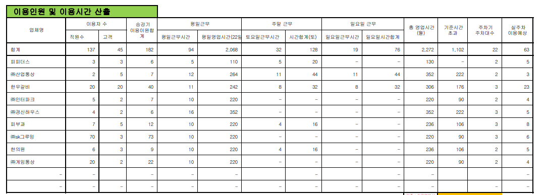 입주 시 관련 사항들을 입주자 카드를 통해 제출 받아야 합니다.(야근 유무, 주차기의 차량이용대수, 직원수, 이용자수 등등...)