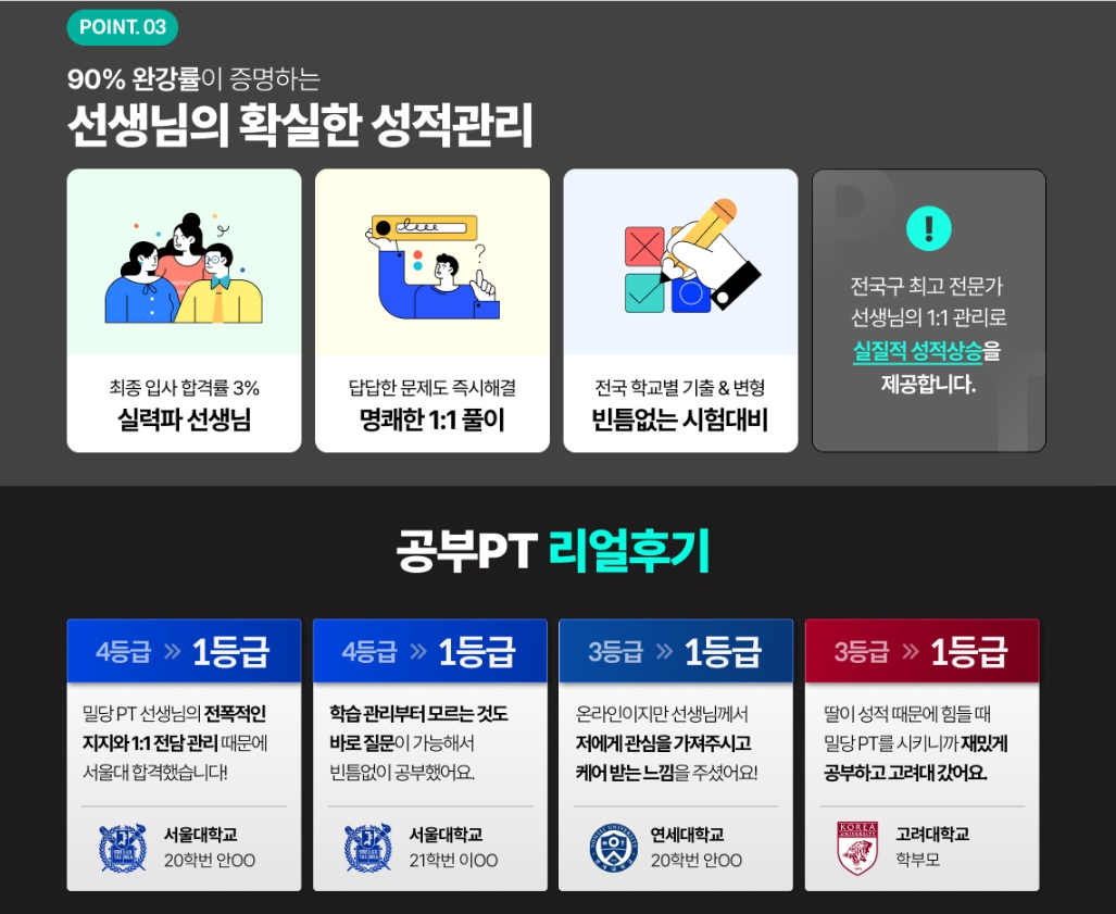 1:1 온택트 퍼스널 티칭 방식으로 모든 학생이 마땅히 받아야 할 관심을 받을 수 있습니다. "